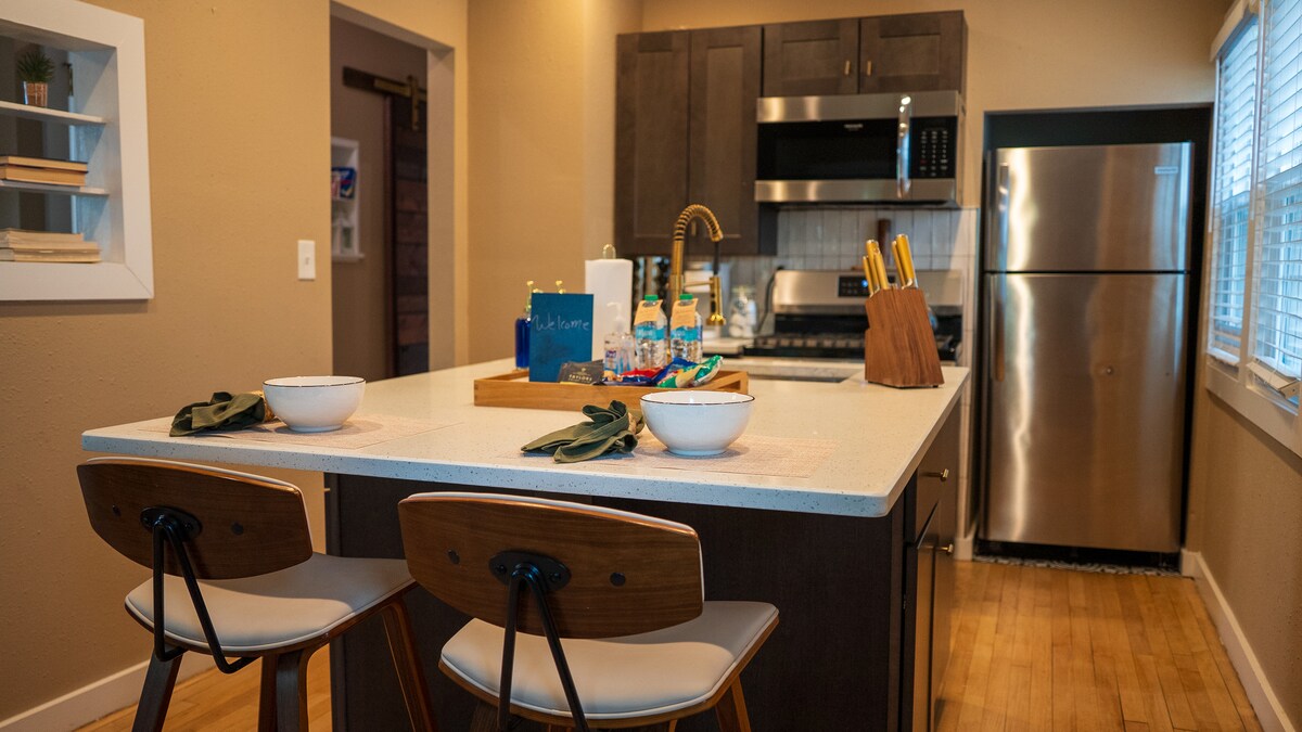 Velkommen til ditt stilige tilfluktssted i Milwaukee! Dette loftet med ett soverom blander historisk Cream City-sjarm med moderne komfort. Høye tak, eksponert murstein og store vinduer skaper et lyst, åpent rom. Nyt en romslig kingsize-seng, fullt utstyrt kjøkken og gratis parkering utenfor gaten – sjelden i dette nabolaget. Gå til Third Ward, Walker's Point og Milwaukees beste restauranter, bryggerier, butikker og den livlige elvefronten. Perfekt for både jobb og lek.