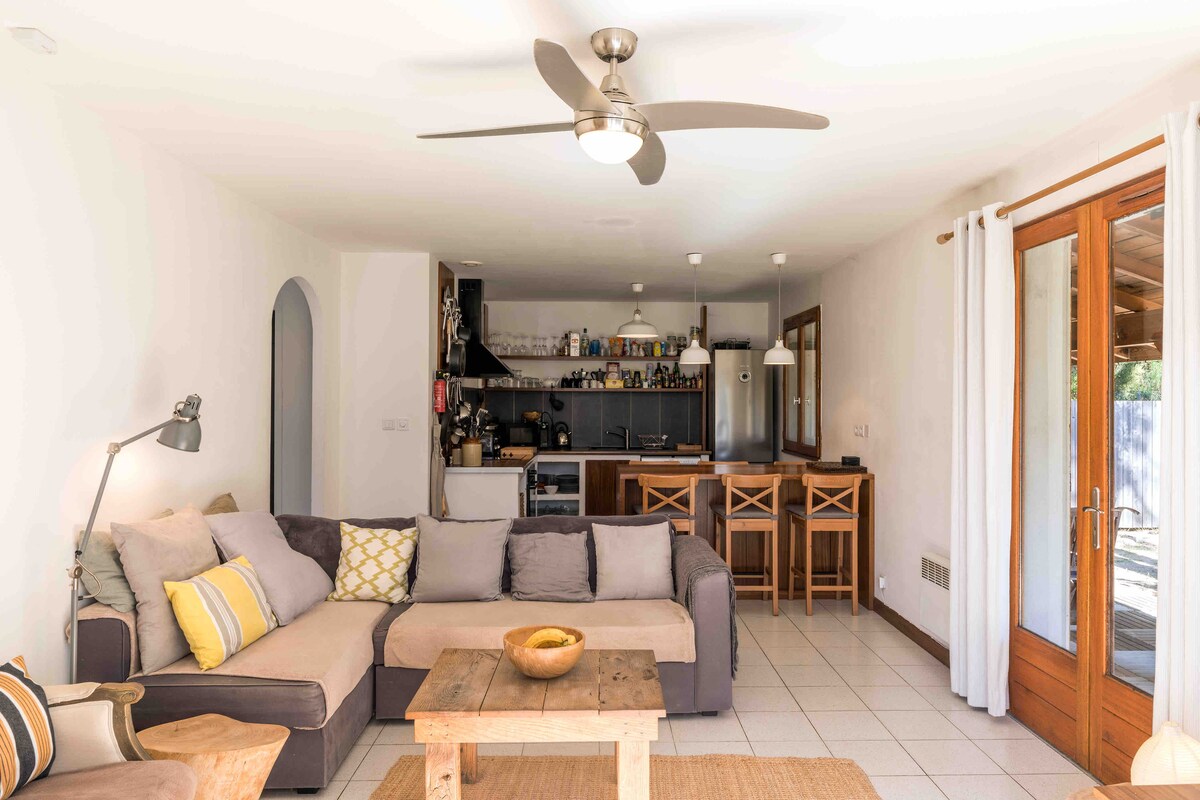 Hus med to soverom, seng for seks personer, stor hage, omgitt av furuskog. Dette er et nydelig, fullt utstyrt hus vendt sørover, som ligger i Labenne Ocean, 500 meter fra havet. Den åpne kjøkkenløsningen har skyvedører i glass som vender sørover, noe som gjør rommet veldig lyst og luftig. Huset ble bygget med ingenting annet enn vakker furuskog bak. Du kan gå til surfestedene, stranden, lokale butikker, barer, restauranter og takeaway.
