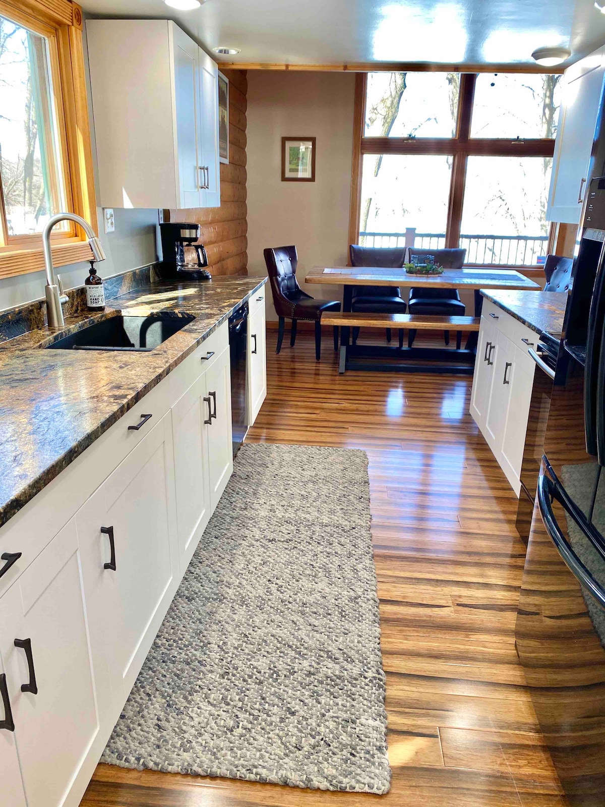 En leilighet med to soverom over Getaway Motor Cafe i det historiske sentrum av Carver i Minnesota. Bygget i 1871, omhyggelig restaurert og innredet med en nordisk, moderne varme som får deg til å ønske å bli litt lenger. Jøtul-peis, gourmetkjøkken, privat balkong med utsikt over bekken og en kafé nedenunder for morgenkaffe og cocktailer om kvelden. Plass til fire personer. Småby-sjarm, milevis med turstier. Kom og hvil deg.