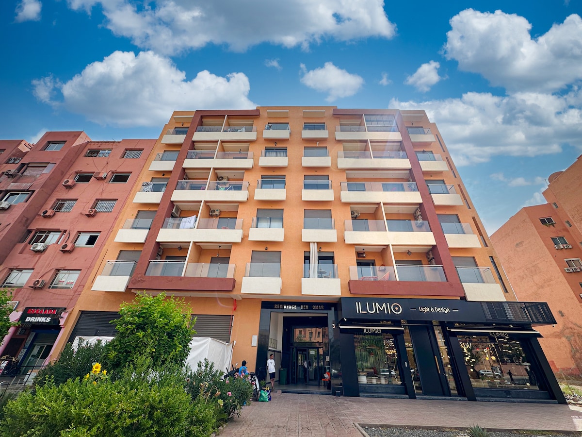 Bo i hjertet av Guéliz, Marrakech, i en stilig leilighet med innendørs basseng, treningsstudio, balkong og ultrarask fiber-Wi-Fi. Perfekt beliggenhet bare fem minutter fra Carré Eden, kafeer og restauranter. Gratis sikret parkering, innsjekking uten vert, ideelt for hjemmekontor, byferier eller lange opphold. Moderne komfort, sentral beliggenhet og førsteklasses fasiliteter er inkludert. Sengetøy av høy kvalitet, fullt utstyrt kjøkken, klimaanlegg. Superhost ⭐ med over 100 positive anmeldelser – bestill med tillit!