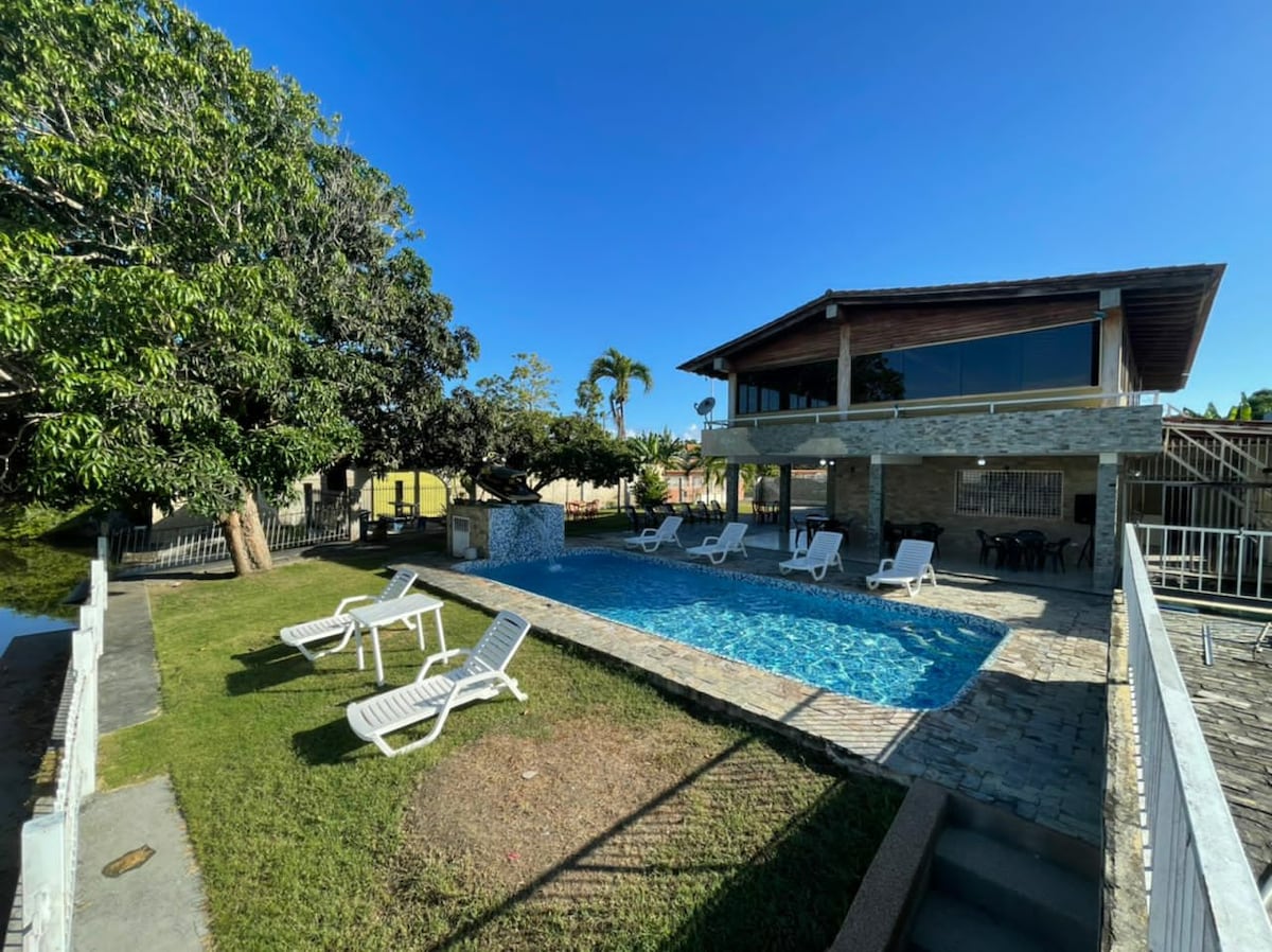 Ta hele familien med til dette fantastiske stedet med basseng, klimaanlegg, grill, parkering, privat overvåkning, vanntank, brygge for å gå til stranden med båt, utmerket for feiringer.