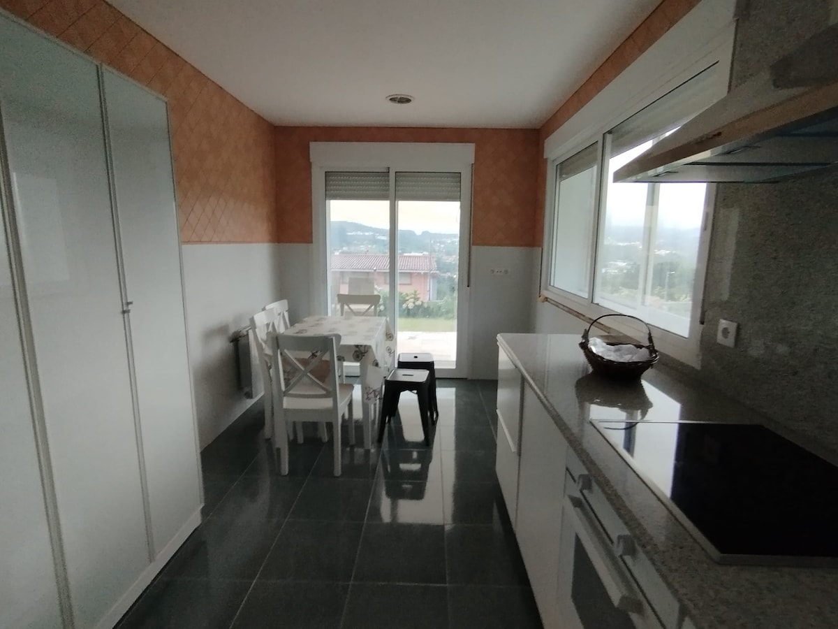 Villa i landlige omgivelser, helt ny og moderne, 1200 m hage med svømmebasseng, grillplass og bordtennisbord. Ideell for par, familier og grupper. Veldig godt forbundet med en rask vei til strandområdene (Sanxenxo, A Lanzada Grove, Combarro, Isla de Arousa ..) og byer som Santiago de Compostela. Det ligger 5 minutter fra byen Pontevedra. I nærheten finner du et ridesenter og flere furanchos (typisk spisested) hvor du kan spise. Mulighet for å huse opptil 12 personer.