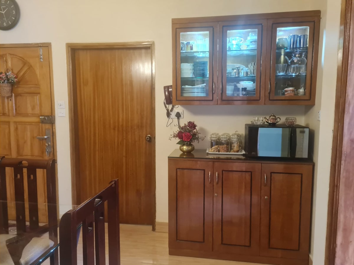 Kos deg sammen med dine nærmeste på dette familievennlige stedet. Nær flyplassen og alle fasiliteter. Dagligvarebutikker ligger få minutter unna. Elegant innredet med alle husfasiliteter. Separat treningsrom med elektrisk tredemølle og annet utstyr. Eksklusivt bibliotek med en enorm samling av bøker. Tre 55 tommers TV-er, seks klimaanlegg, alle bad med Geyeser, seks batteri-IPS-er som dekker hele leiligheten i tillegg til generator. Gulv av ekte tre og spanske fliser. Dyrt tremøblement.