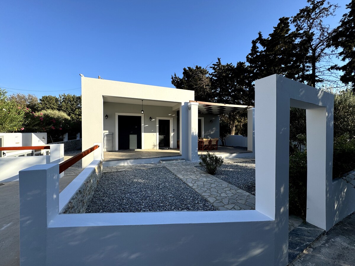 Velkommen til vårt fredelige hjem✨. Et sted å roe ned, slappe av og nyte skjønnheten rundt deg. Det ligger blant furutrær og olivenlunder, med fantastisk utsikt over havet og solnedgangen, og er det perfekte stedet å slappe av. Bare en tre minutters spasertur bringer deg til den berømte stranden og det livlige hovedtorget, så alt du trenger er i nærheten. Og for de som elsker eventyr, ligger klatrestien Gerakios Yellow Path bare 500 meter unna. Vi gleder oss til å ønske deg velkommen!