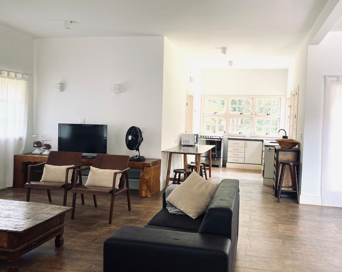 >>> >>>mataaberta Mata Aberta er en ranch med to hytter. Hytta har utsikt over dalen, privat parkering. På den ene siden er det en suite med balkong og et tilstøtende kjøkken med sovesofa, kjøkken og balkong. Perfekt for par (+ barn). Begge rommene har tilgang til ett bad. Klorfritt steinbasseng, asfaltert steinsti gjennom urskogen. Utepeis. Elektrisk varmeapparat på soverommet. Asfaltert tilgang til stedet. 6 km fra sentrum av Guararema, 1 time fra São Paulo.