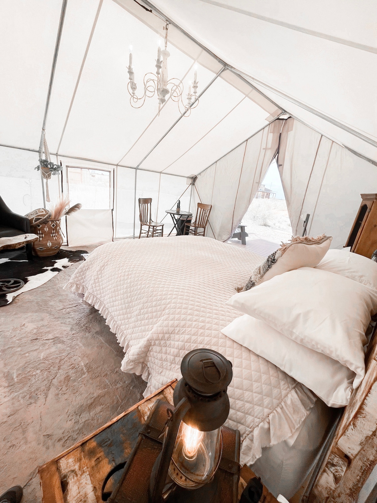 Drømmende glampingtelt med oppvarmet seng
