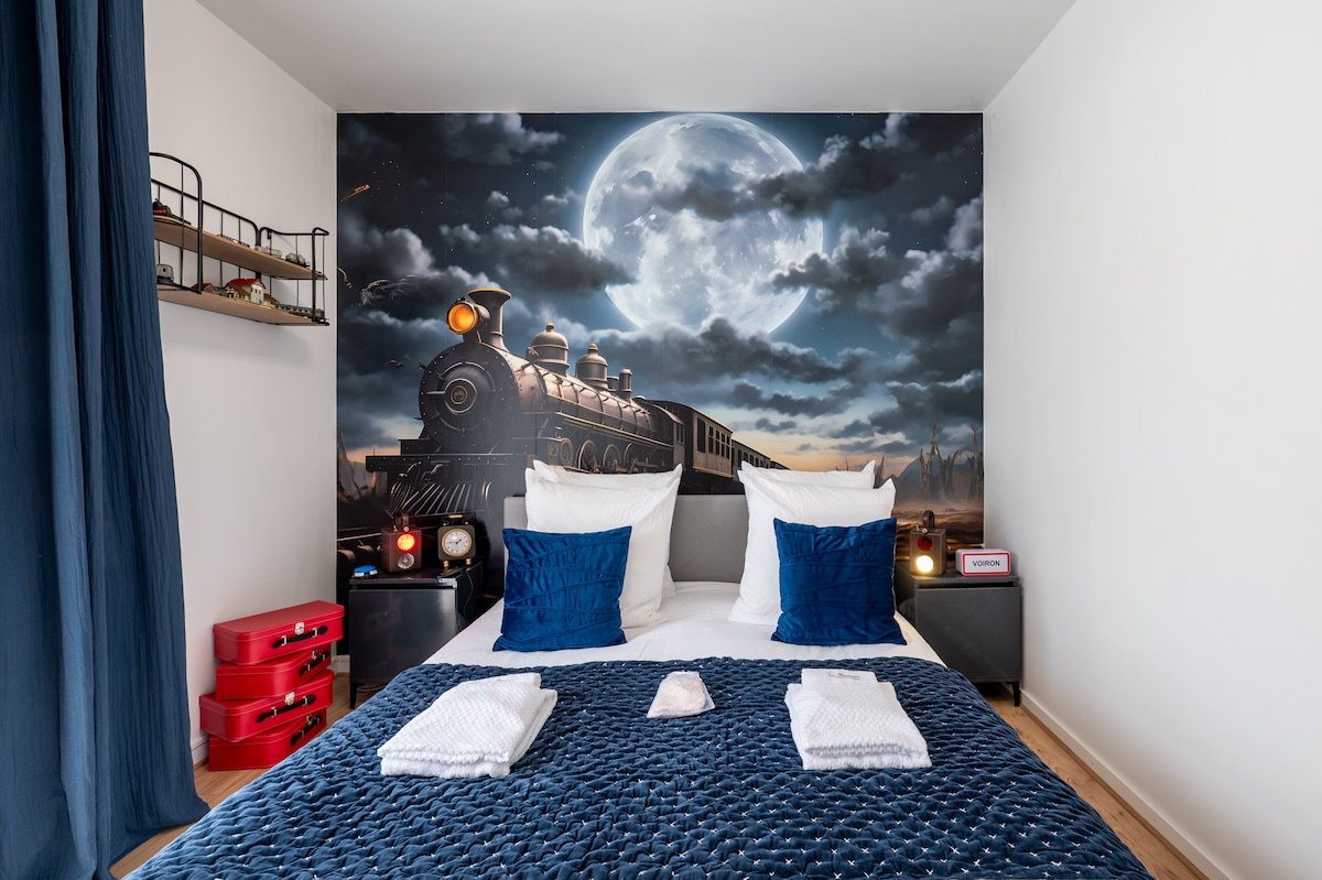 Profitez d'un logement élégant à l’ambiance boisée . Entièrement équipé pour satisfaire vos séjours. Situé dans l'hyper centre de Voiron à 150m de la Gare. Le grand marché de Voiron qui a lieu tous les mercredis et samedis matins se trouve à 400m. Capacité 4 personnes ~~~~~~~~~~~~~~~~~~~~~ Appartement 56m² ~~~~~~~~~~~~~~~~~~~~~ Appartement très calme, situé au 1er étage sans ascenseur. Une chambre indépendante avec un lit 140*200 et deux grands placards Un grand séjour ouvert sur la cuisine