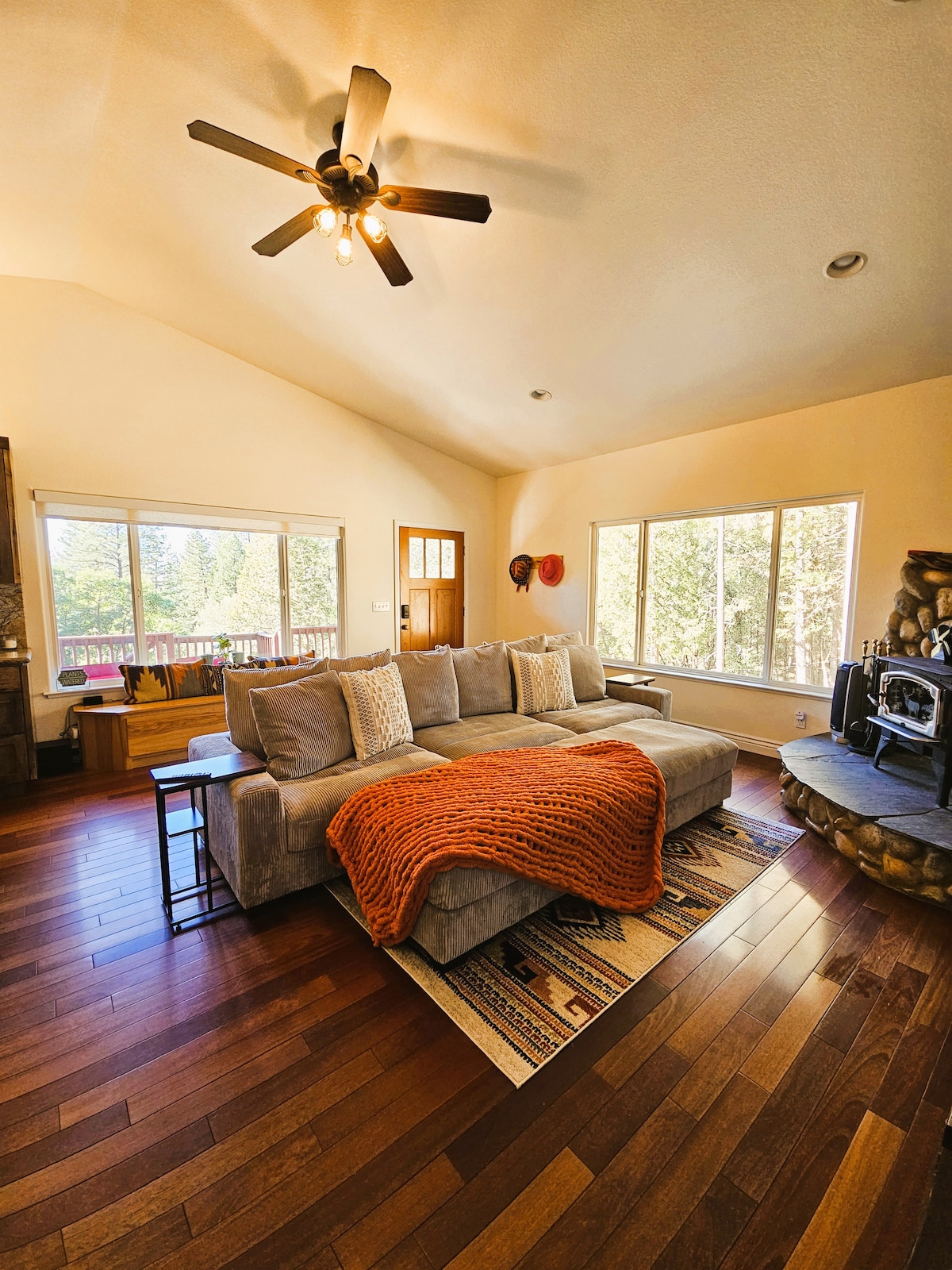 Kom og nyt denne rustikke hytta omgitt av natur på vår 114 hektar store gård i Sierra Nevada Foothills. Fredelig privat skog. Nyt energigivende turer, stjernetitting med teleskopet eller fossen vår! Barn elsker lekene våre, hinderløypa, trampolinen, tetherball, basketball og mer! Prøv lykken ved å panning for gull – Finders Keepers! Når det gjelder snø, får vi det beste fra to verdener. Vi får snø, men vi blir ikke begravet i den. Send meg en melding for de siste snøforholdene.
