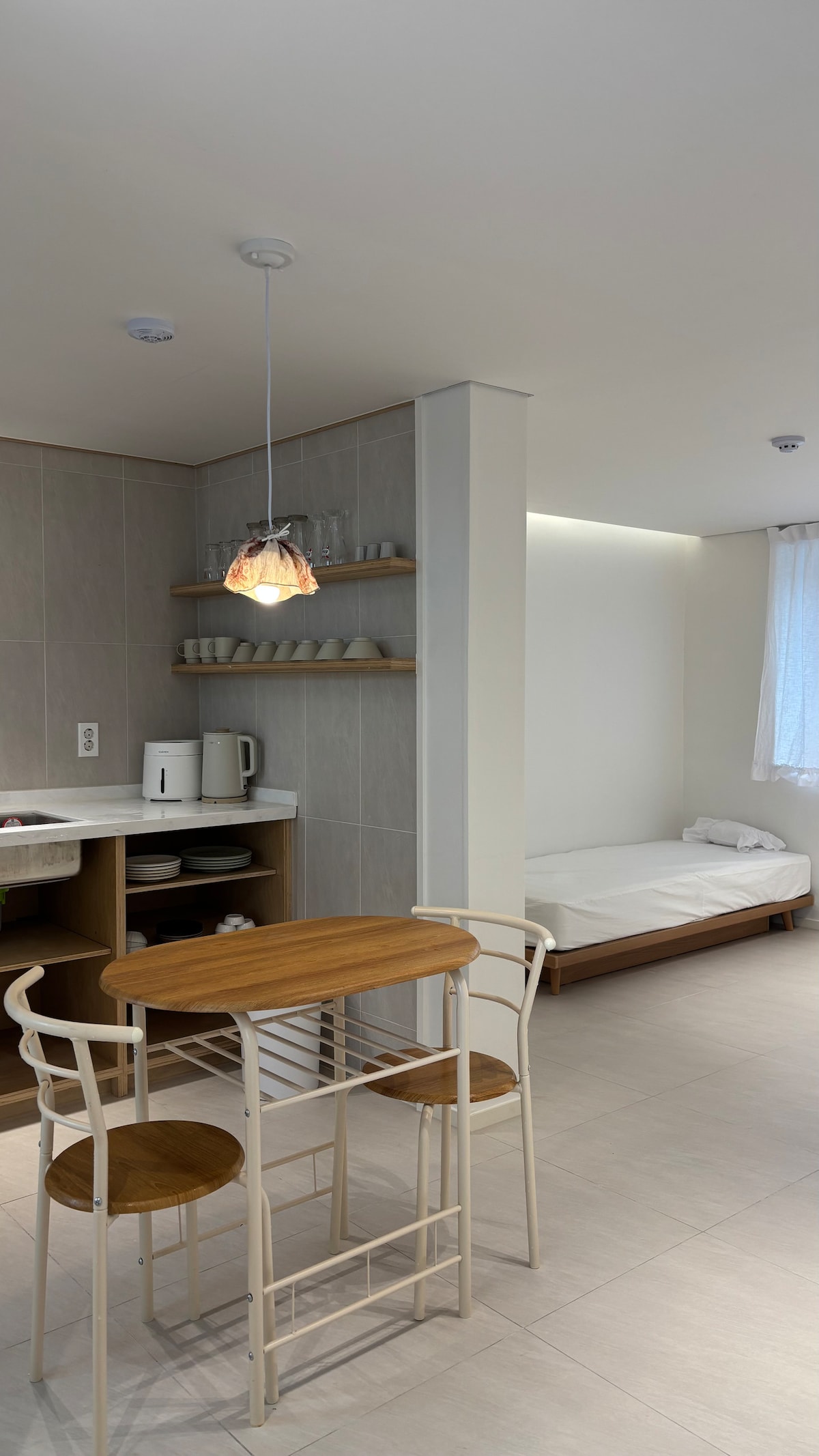 To senger, privat bad, tekjøkken (mikrobølgeovn, kaffekanne, kjøleskap) NYÅPNET Nylig åpnet overnattingssted – tilbring en spesiell dag på et rent og trivelig sted. Det er et Yujung-vandrerhjem med en vakker utsikt mot Mokpo. Kom deg vekk fra bylivets mas og nyt et avslappende og hyggelig tilfluktssted i et rolig boligområde. På et koselig sted som er preget av vertens varme. Du kan føle avslapningen og den ekte Mokpo-sjarmen som du ikke finner i hverdagen din. Spesielt sengetøyet holdes alltid rent. Vi tilbyr behagelig hvile i et rent og hyggelig miljø, som om det var nytt. Ryddige rom og grunnleggende fasiliteter Vi har gjort alt klart slik at du kan bo her uten ulemper under oppholdet. På et lite, men gjennomtenkt sted Jeg vil være tilgjengelig under oppholdet ditt. * Kjæledyr er forbudt. 🔺 Her er noen tips for et mer komfortabelt opphold. Når du bruker trappene og gangene etter kl. 22.00, Vennligst avstå fra å bråke. Vi setter pris på om du kan samarbeide ved å bruke stedet på en rolig måte av hensyn til andre gjester.