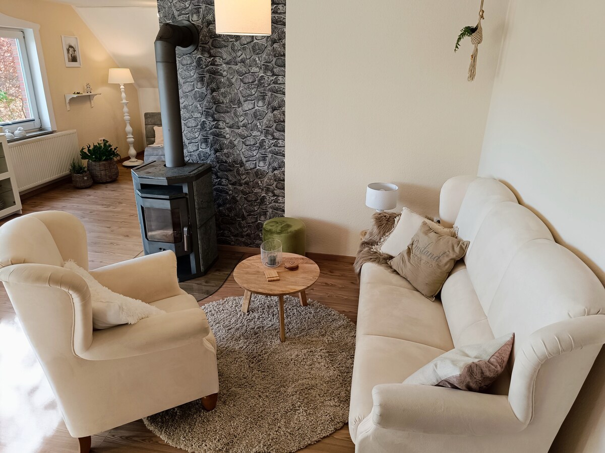 Velkommen til velvære-ferieleiligheten «Zur Oase» med privat sauna, spa og hage inkl. boblebad og grillkota. (kan bestilles for 100 €/dag) Nyt en pause i den koselige ferieleiligheten, som lar deg glemme hverdagens gråhet for et øyeblikk. Leiligheten vår ligger i en grønn og attraktiv beliggenhet, omgitt av tur- og sykkelstier og mange utfluktsmål. Høydepunktet i leiligheten er den private saunahagen inkl. sauna, badekar, grillkota og overbygget terrasse.
