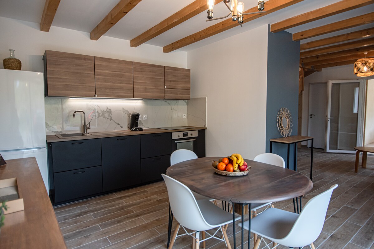 Denne uavhengige hytta (45m2), rett overfor eiernes hus, ligger i hjertet av middelalderlandsbyen Mollans-sur-Ouvèze, nær alle de viktigste butikkene. En oase av fred 15 minutter fra Buis-les-Baronnies og Vaison-la Romaine, 30 minutter fra Mont Ventoux. Fra terrassen kan du høre den myke lyden av elven, 5 minutter å gå fra hytta hvor du kan gå og kjøle deg ned. Ro og fred er garantert i denne totalrenoverte hytta. Et unikt sted for naturelskere!