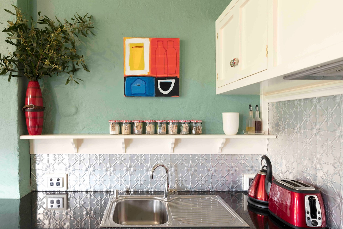 Kontinentalfrokost inkludert og ingen rengjøringsgebyr! «Kitchen Cottage» ligger på åpen jordbruksmark og er omgitt av eukalyptusbusker. Det er en frittstående, privat bolig ved siden av det gamle huset. Nyt den avslappende freden og roen, utsikten og spaserturene. Daylesford ligger bare syv minutter unna med utmerkede kaféer, restauranter, interessante butikker, spa og en overflod av utendørsområder å utforske. Fem minutter vest ligger den lokale puben vår, «Swiss Mountain Hotel» i Blampied.