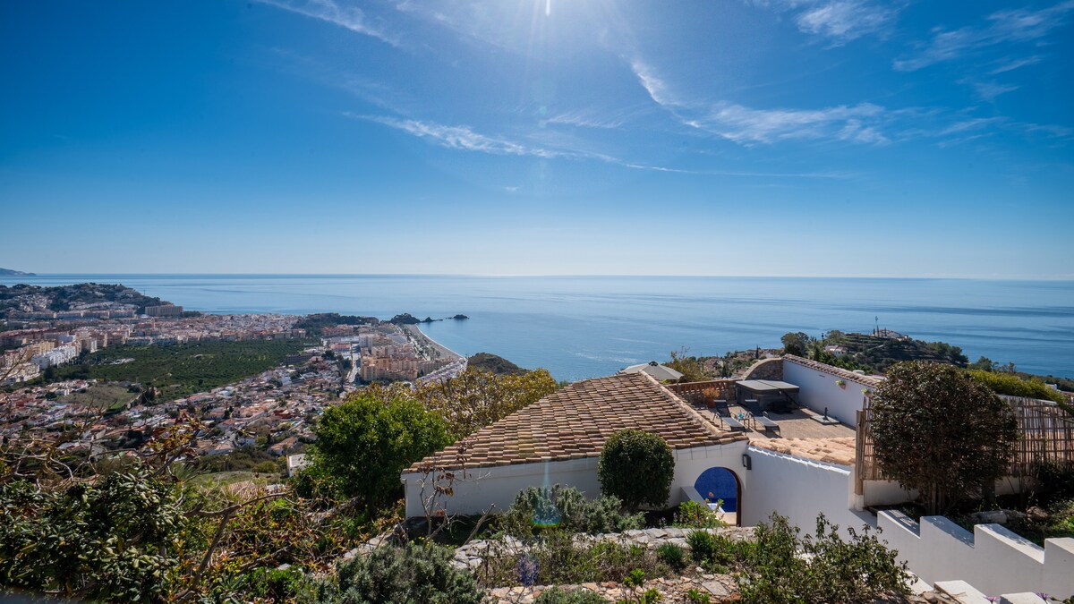 Opplev den typiske kystferien i denne lyse villaen i andalusisk stil, hvor hvert rom er et vindu til den fantastiske 180º utsikten over Middelhavet. Nyt solskinnet hele dagen! Huset med tre soverom har et privat saltvannsbasseng med valgfri oppvarming og terrasser med utsikt. Nyt det fullt utstyrte kjøkkenet, den lyse stuen og stilige møbler. Garasje og trådløst nettverk tilgjengelig. Kos deg på dette Airbnb ved stranden året rundt!