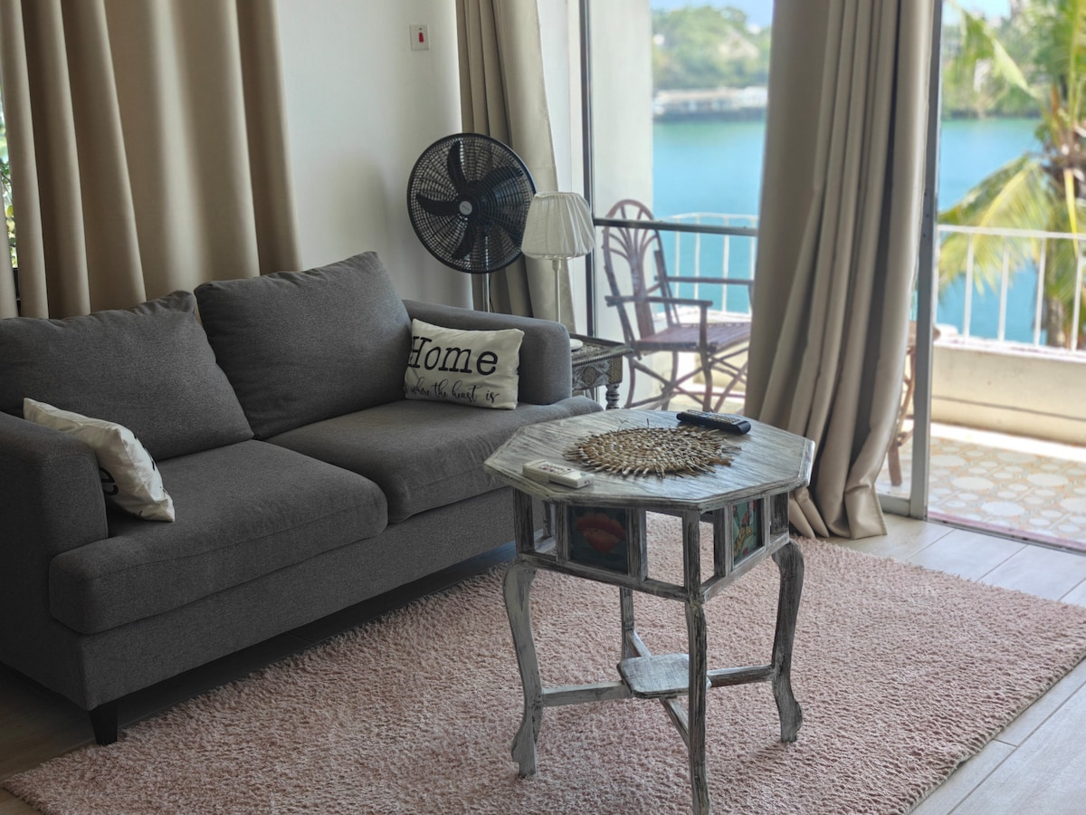 Glem bekymringene dine på dette romslige og fredelige stedet. Våkn opp til lyden av bølgene og utsikten over den fortryllende gamlebyen. Nyt frokosten på verandaen med utsikt over en avsidesliggende hage og Tudor Creek. Begge soverommene har eget bad, og det er en vennlig vaktmester på eiendommen, i tillegg til et fullt utstyrt kjøkken. Gangavstand fra English Point Marina, The Tamarind og bare fem minutter med bil til Chandarana Foodplus Supermarket. Din ferie for å hvile. Slapp av. Gjenta venter på deg.