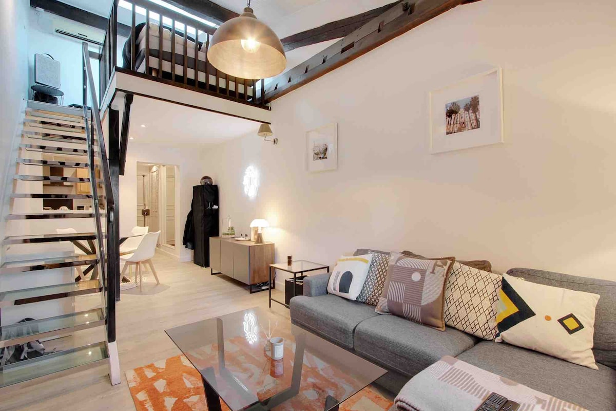 Lyst, fredelig tilfluktssted i nærheten av Louvre – klimaanlegg og balkong.