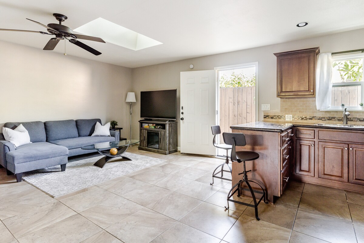 East Suite: 580 square foot 2 room suite, keyless entry, separate living room, bedroom, perfect for LONG-TERM STAYS! Recently renovated, many amenities, new furniture, elegant decor, spacious comfortable; high speed Wi-Fi. Kitchenette with all appliances, filtered drinking water faucet, all necessities for basic cooking. Queen bed outfitted with high-end hotel quality bedding. Secured gated parking. LA County, close to everything in SoCal. 2nd adjacent suite available. MONTH STAYS AVAILABLE.