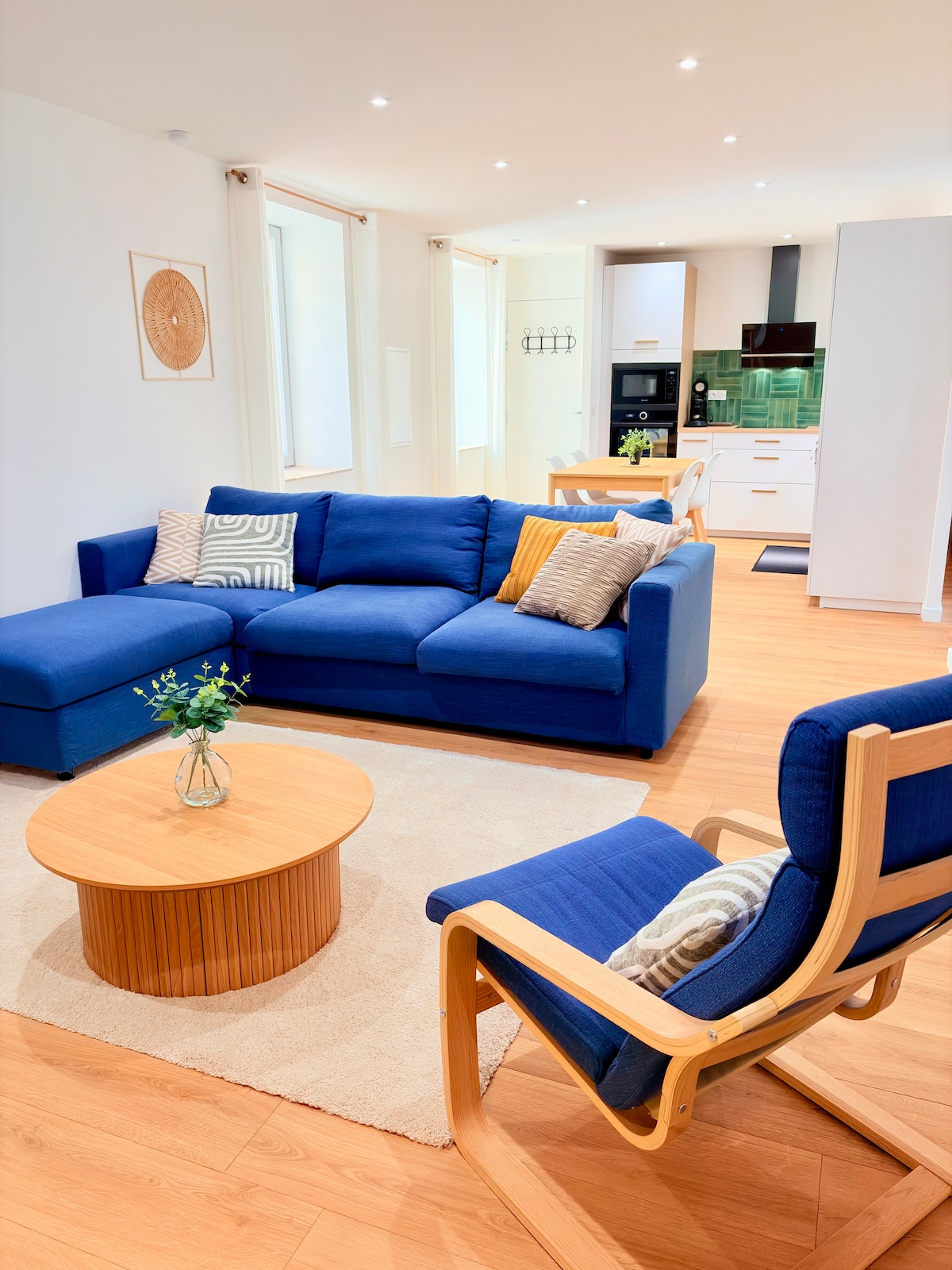 Ny leilighet, med karakter takket være synlige steiner og katedralhøyde i taket. Den består av en åpen stue med en sovesofa som tilbyr to senger, et separat toalett og et bad i første etasje (sengetøy følger med), og i andre etasje, et soverom med en dobbeltseng. Alt er tilgjengelig for matlaging i et fullt utstyrt kjøkken. Leiligheten er utstyrt med Wi-Fi og TV. Parkeringen er gratis og rett utenfor leiligheten.