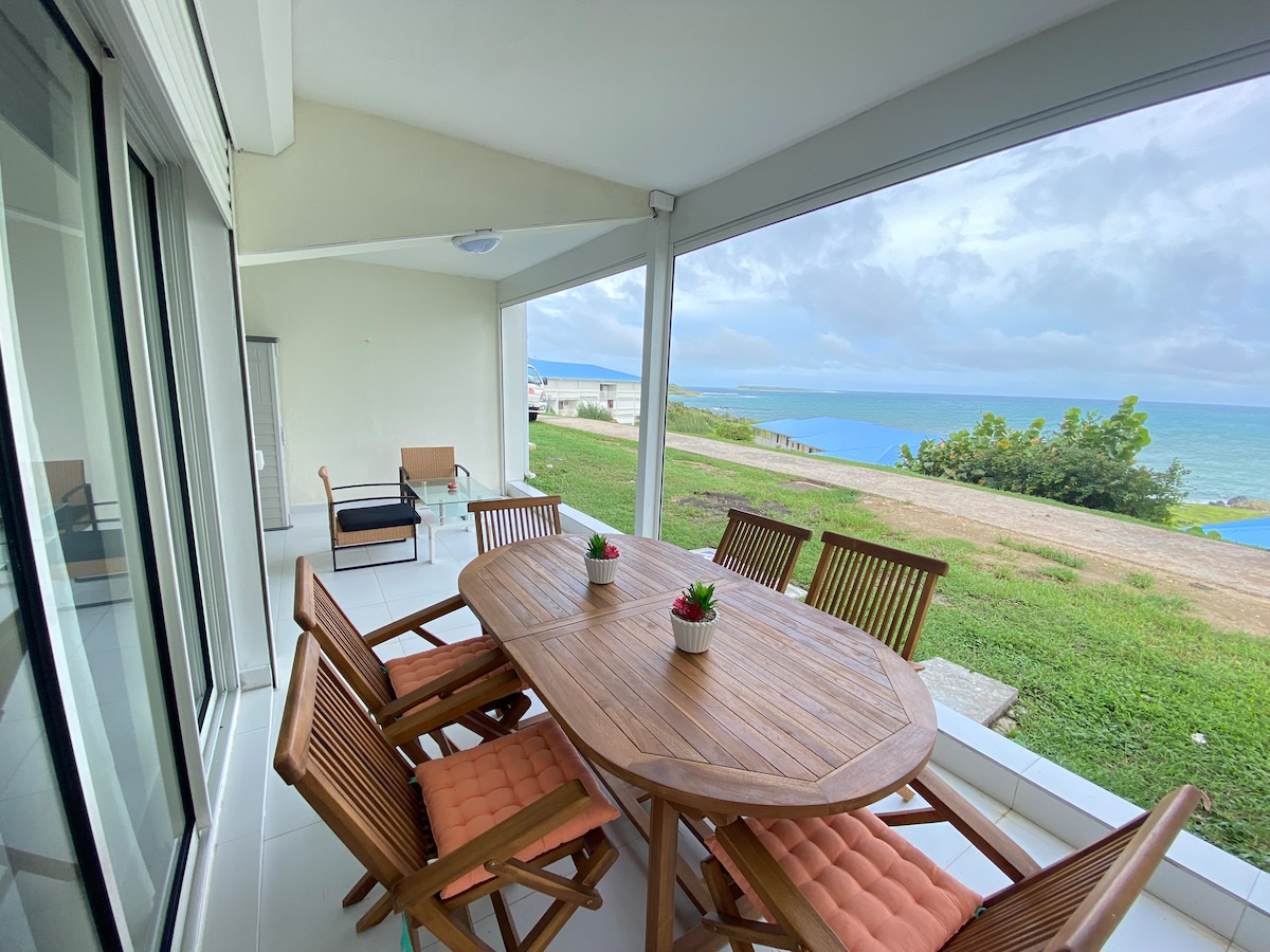 Du vil ankomme til en rolig, lys, elegant bolig med en sjarmende utsikt over havet og en fin terrasse for å nyte solnedgangen. Studioleiligheten har en ideell beliggenhet, og er fullt møblert og utstyrt. Den har en eksepsjonell utsikt over Orient Bay-stranden. Leiligheten ligger i 1. etasje med en gangvei som gir tilgang til boligen uten trapper! Boligen har et stort svømmebasseng. En liten spasertur er nødvendig på vår lille øy, vi gleder oss til å ønske deg velkommen.