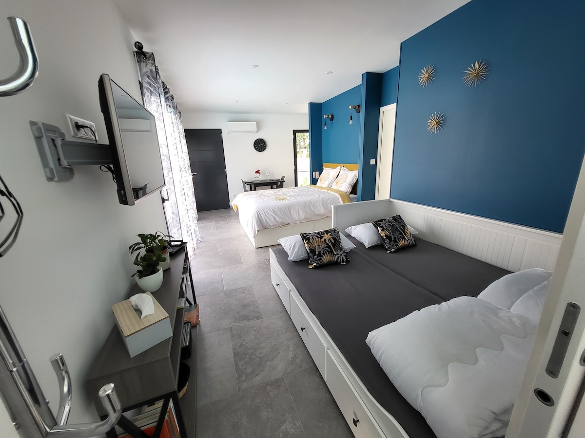 Le Nid du Merle er et lite tilfluktssted for fred. Stille og elegant innkvartering, stort soverom med klimaanlegg, bad med badekar og dusj og utstyrt kjøkken. Alpehytte med egen toseters jacuzzi + finsk sauna for privat bruk, med åpent område: hagemøbler, terrasse, bioklimatisk pergola-grill og plancha. Tilgang til svømmebassengområdet oppvarmet til 30 °C og en stor utendørs jacuzzi. Boulodrome (petanque-sett). Minidyrpark, blomsterbed over 2 ha.