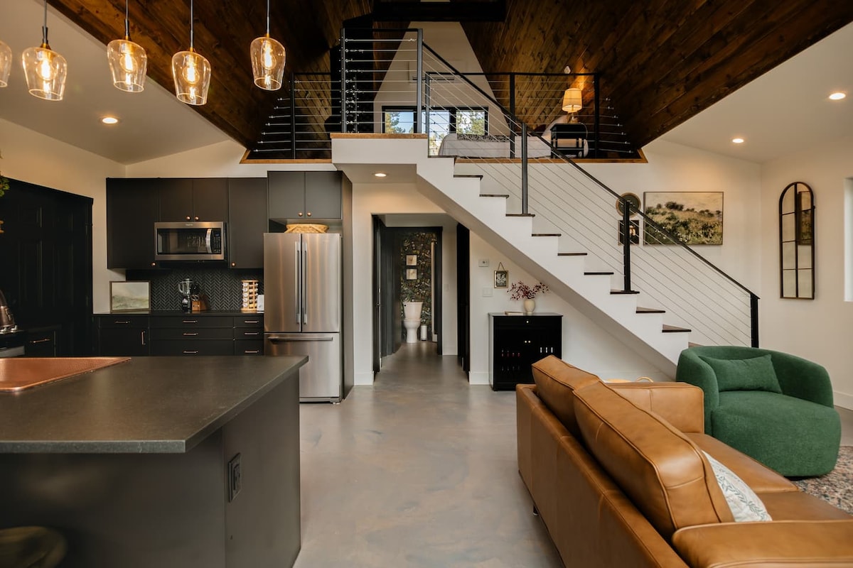 Nybygde, 675 kvadratmeter Sunrise Silo har plass til 4, med en queen size-seng på loftet og en uttrekkbar sovesofa i hovedetasjen. Sunrise Silo er et unikt eksempel på hvordan rustikk sjarm passer perfekt med moderne fasiliteter og en nytelsesrik opplevelse. Den fantastiske, uhindrede utsikten over Bridger Mountains og den omkringliggende Gallatin Valley vil sikre at dette blir din favorittferiedestinasjon i Montana. Nyt en landlig setting samtidig som du har enkel tilgang til eventyr og underholdningsmuligheter.