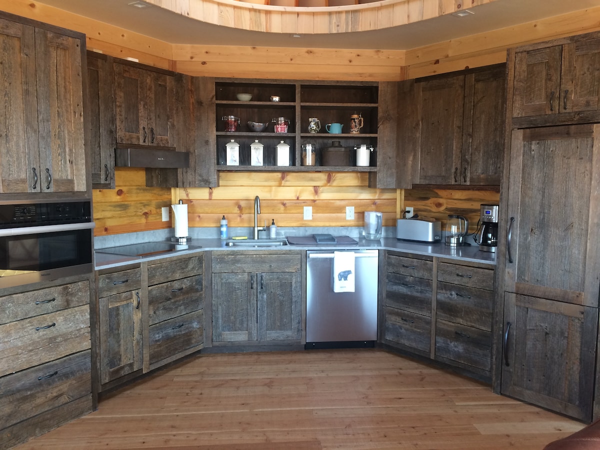 Velkommen hjem! Dette er en 30 fots moderne jurt på fjellet, omgitt av skog. Vi har omtenksomt laget et sted som er både moderne, men likevel Montana. Du får tilgang til fasiliteter som trådløst nettverk, en plysj kingsize-seng, fullt kjøkken og bad, inkludert en sesongbasert utedusj (mai–november) og til og med et vakkert bålsted rett utenfor inngangsdøren. Hjort og kalkuner kommer garantert til å hilse på deg gjennom hele dagen også. Du må gjerne sende oss en melding hvis du har spørsmål!