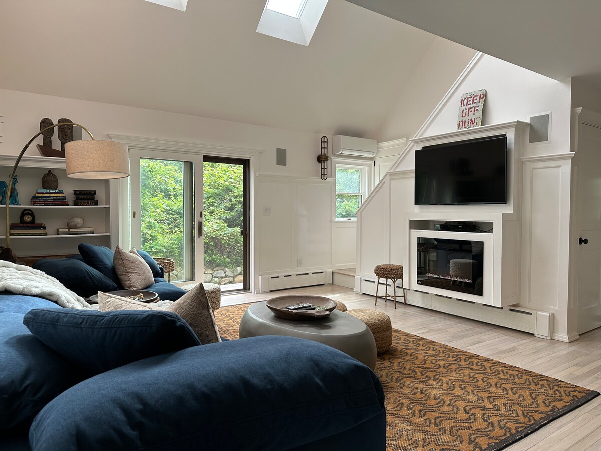 Scandinavia meets Montauk in this sophisticated, comfy, all-season getaway with open-plan interior & large, private fenced yard. • 950 sq ft, 2 BRs (compact but comfy), 1 Ba, full high-end kitchen, W/D, A/C • Wood stove, Solo stove, patio, outdoor shower, high-end linens & furnishings/decor • Steps to LI Sound & Harbor. 3 mi to ocean/Town • Owner is in a private studio w/ own entrance in the house. No shared spaces! • Ask about dogs & flexible rental periods CLICK MORE for IMPORTANT INFO!