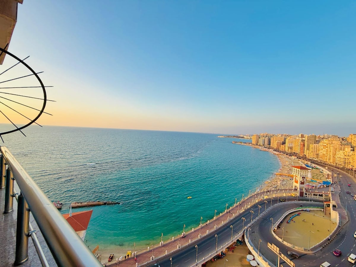 En vakker leilighet ved stranden i hjertet av Alexandria med fantastisk havutsikt fra alle rom. Den ligger i 11. etasje og er romslig. Leiligheten er fullt utstyrt med aircondition, en stor stue, tre soverom og et fullt utstyrt kjøkken. Nyt trådløst nettverk, satellitt-TV og rent sengetøy og håndklær. Den har plass til opptil seks gjester, og er perfekt for avslapning. Den pulserende beliggenheten nær stranden og hovedveien kan av og til ha lyder av byliv i rushtiden, noe som bidrar til den livlige atmosfæren.