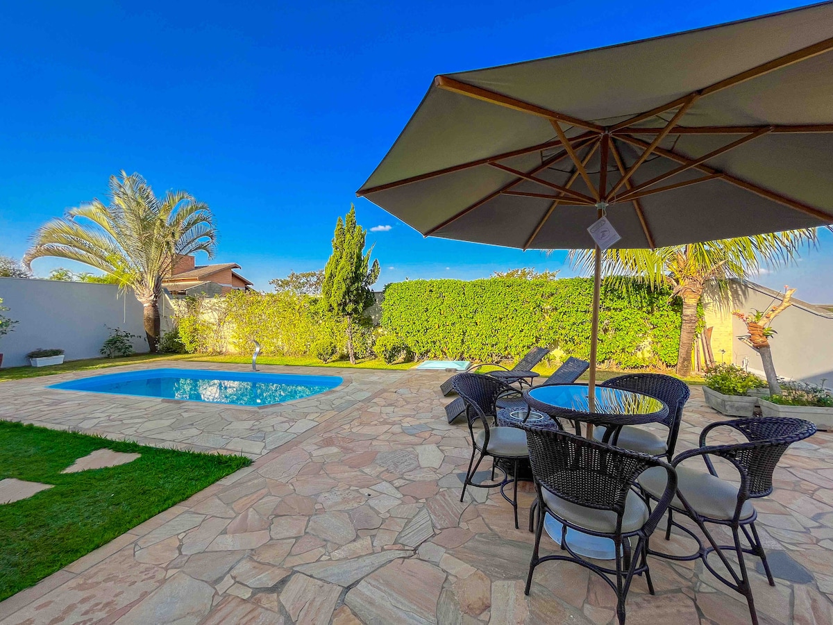 Privat hus med høy standard, boblebad og basseng Tre uavhengige hytter med dobbeltseng, sovesofa, eget bad og aircondition Sengetøy og håndklær av høy kvalitet følger med Privat basseng og boblebad Klimaanlegg i gourmetområdet med total privatliv og komfort Raskt og stabilt internett på hele eiendommen Lukket boligområde med fiskesjøer, strandtennisbaner, fotball, volleyball og lekeplass Vi aksepterer arrangementer Kjæledyr er velkomne