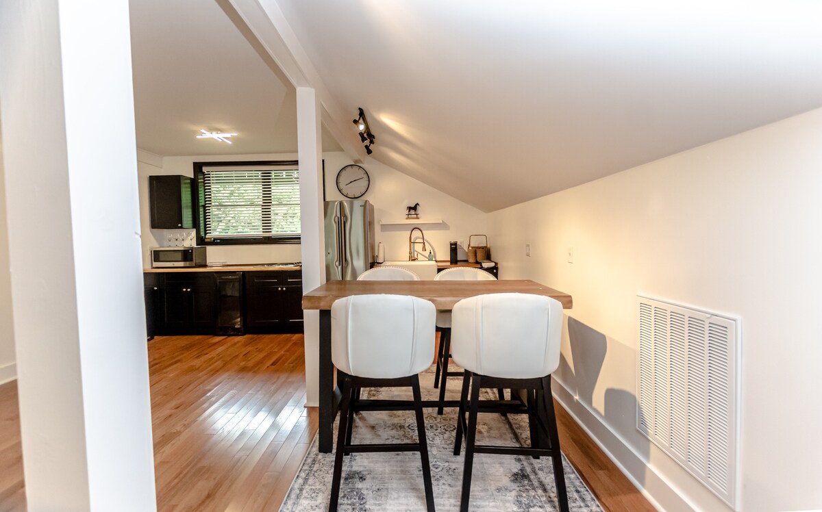 Privat feriested bare ni minutter fra sentrum i Huntsville, Alabama. Dette tidligere kjøtt-røykehuset er fullstendig renovert til et stilig moderne gårdshusstudio. Nyt fredelig utsikt over beitende hester og Monte Sano-fjellet fra vinduene dine. Inne finner du all den moderne luksusen: en justerbar Purple queen-madrass, lynraskt trådløst nettverk, smart-TV-er med Roku, splitter nye apparater og et plettfritt, innbydende sted. Ikke gå glipp av sjansen til å slappe av på dette unike gjemmestedet like ved Hwy 72.