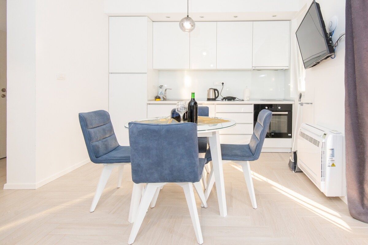 Fullservicert leilighet med solrik privat balkong og fantastisk utsikt over bukten. Møblert på en moderne måte og utpekt for å gjøre hvert eneste opphold komfortabelt. Leiligheten ligger 300 meter fra havet og 1,50 kilometer fra vår vakre gamleby. Leilighetsstørrelse 41 m2 med plass til opptil fire gjester. Ligger også i en ny bygning (ferdig i 2020) med heis. Hvis du ønsker privatliv og komfort, kan leiligheten vår være et alternativ til et tradisjonelt hotell.