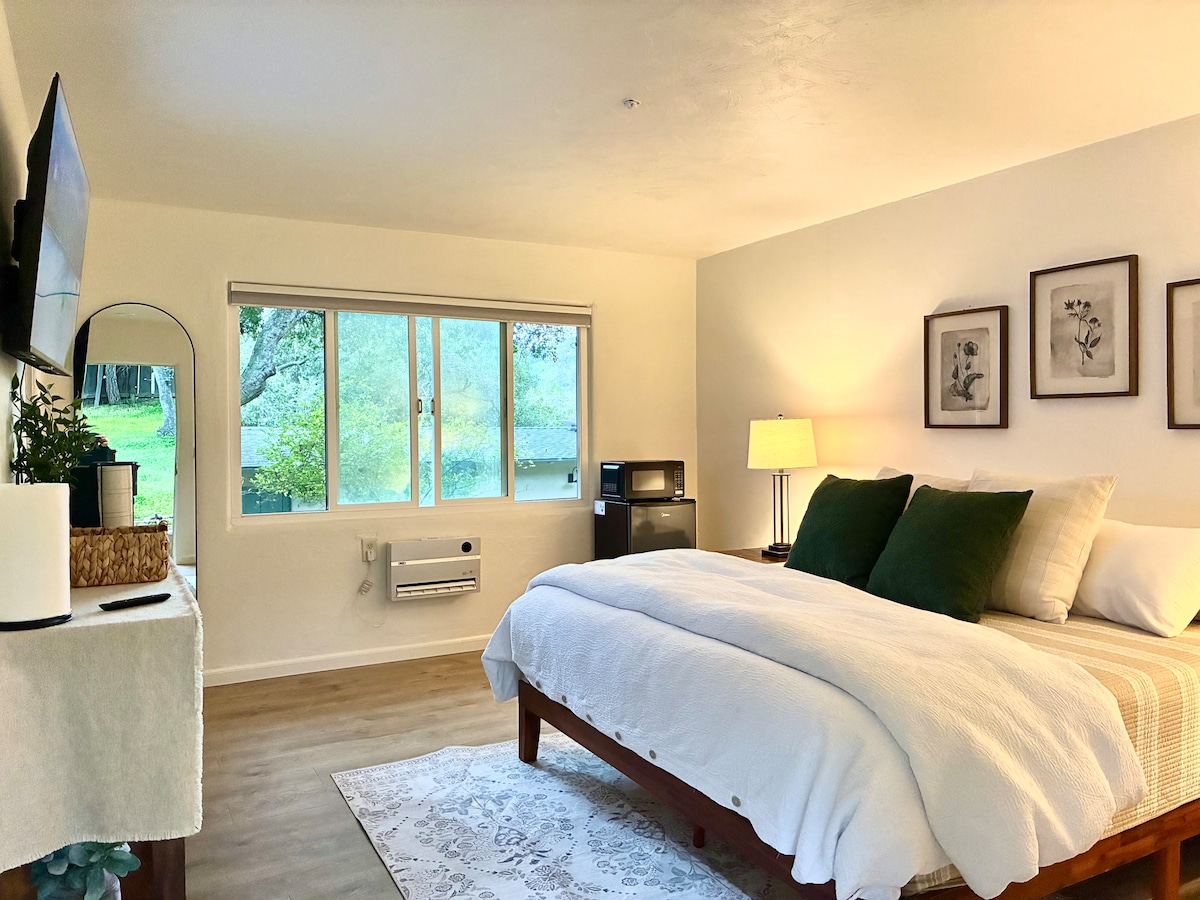 Located 1 mile from Carmel valley Village and 12 miles from Carmel by the Sea. This space is ideal for those who love the outdoors and wine-tasting as we are 1 mile from 22 wine-tasting rooms in the village and surrounded by an abundance of nature and hiking trails alike. The space is cozy- your own private space with a comfy king bed, full bathroom, a mini fridge + microwave and private yard with a hot tub and fire-pit.