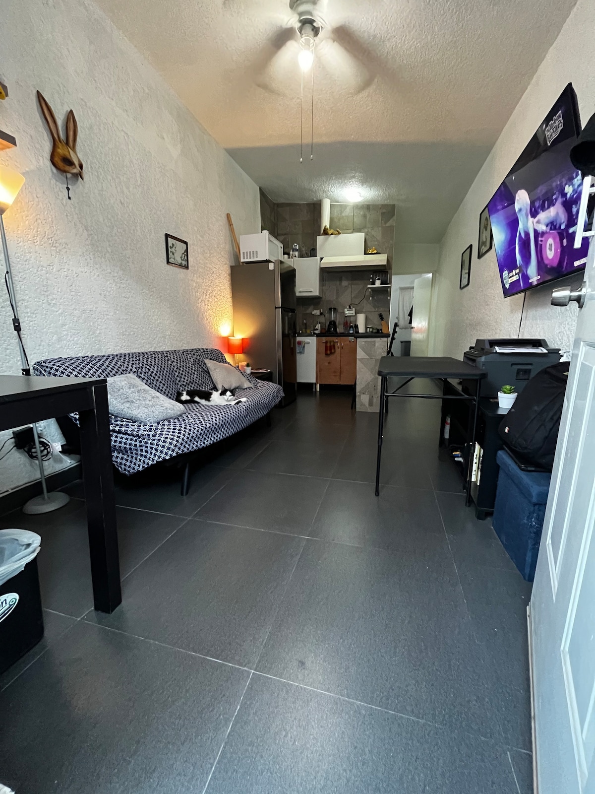 Romslig, moderne og utstyrt loft beliggende i hjertet av Monterrey. 🍽️ ☕️ – Kjøkken utstyrt med panner, gryter, airfryer, kaffetrakter (amerikansk kaffe, koffeinfri kaffe og te), kjøkkenutstyr osv. 🛏️ – Queensize-seng, rent sengetøy og laken 🛋️ – Komfortabel sovesofa. ❄️ Mini Split med klimaanlegg og varme 📺 – 50-tommers TV, Netflix, Prime, HBO og kabel-TV 🛁 – Komplett bad, rene håndklær, tørketrommel og toalettartikler 👨💻 – Arbeidsområde med skrivebord og Alexa 🏪 – OXXO ✔️Flere fasiliteter