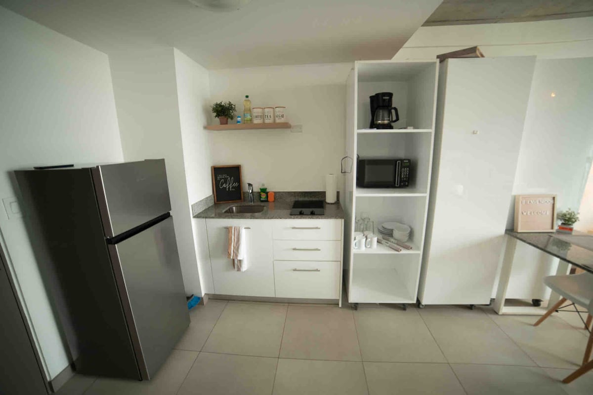Eksklusiv studioleilighet i hjertet av San José's Gastronomiske og kulturelle distrikt, Barrio Escalante. En av de mest pulserende sonene hvis du vil nyte god mat, kaffe og et flott natteliv. Studioleiligheten inkluderer: • queensize-seng • A/C • Internett med høy hastighet • smart-TV • fullt utstyrt kjøkken • vaskemaskin/tørketrommel • privat bad • kaffestasjon • Sovesofa Bygningen tilbyr: • salong med åpent kjøkken. • jacuzzi (ved reservasjon) • Bålplass. • Treningsrom • Døgnåpen vakthold