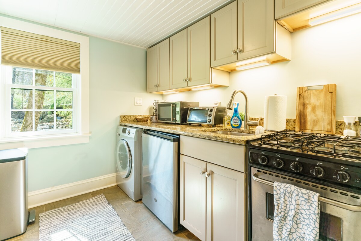 Nydelig gjestehus med ett soverom og en ekstra queensize-seng på loftet om nødvendig. Tekjøkken med granittbenker, stor brødrister, kjøleskap og kaffemaskin. Det er INGEN kokeplate. Huset vender mot skogen og er badet i sollys gjennom hele dagen. Nyt utsikten fra innsiden av huset eller fra den private bakgården. Huset ligger noen skritt unna Wissahickon-parken, hvor det er mange stier å gå på. * Dette er en eiendom kun for TO gjester og ÉN bil.