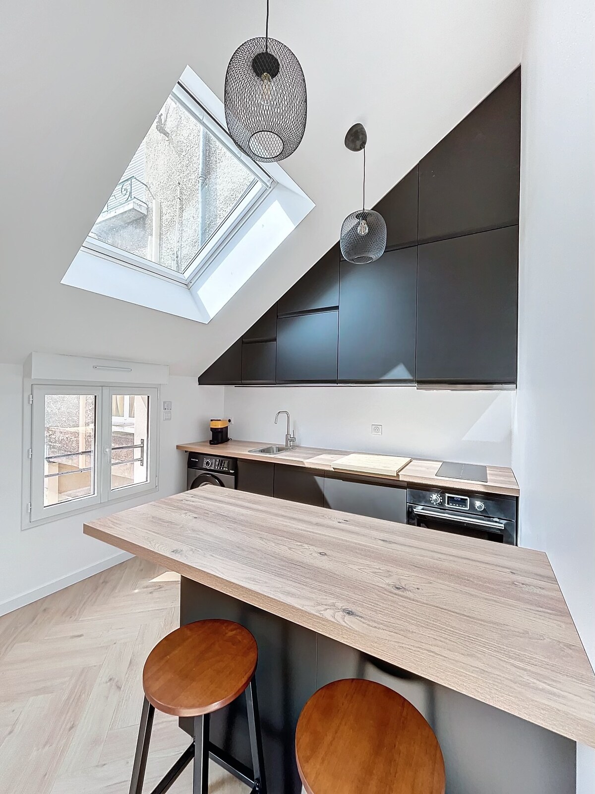 🚩 Velkommen til loftet! 🎁 En gratis flaske champagne som velkomstgave 🥂🍾 🏠↔️Ekstra romslig, 150 m2 loft 💤 Rolig og stille og komfortabelt 🤴 Kingsize-seng 👸 Queensize-seng 🛋️ Sovesofa 🧖♀️🫧 Badekar på badet å slappe av i 📽️🛋️ 4K-projektor i stuen, som på kino. 🅿️🚘 Gratis, privat og sikker parkering på stedet. Bredde: 2,25 m. Lengde: 4,90 m. Høyde: 2,00 m. 🎅 Julemarkedet i desember ligger 15 minutters gange unna