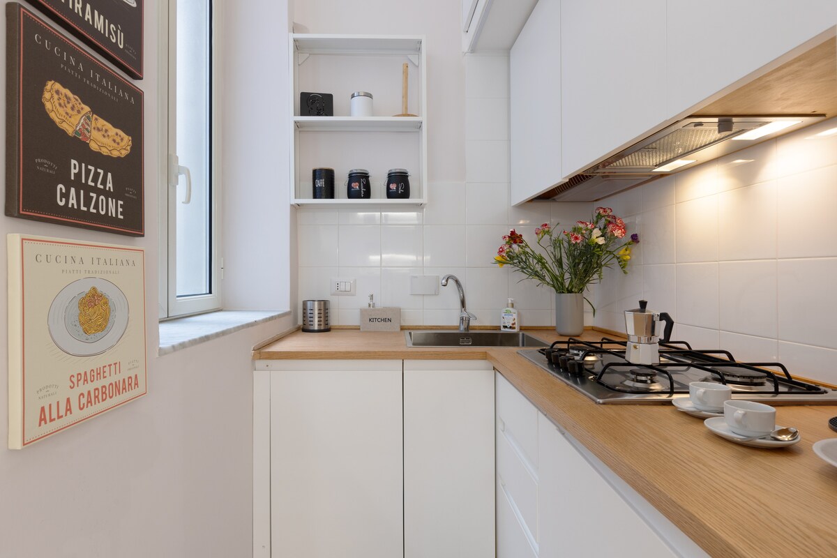 Bo i hjertet av Monti på den ikoniske Via dei Serpenti! Bare 5 minutter fra Colosseum. Monti Charm er et fristed i en bygning fra det 18. århundre med en sjelden luksus: en privat terrasse. Nyt ultraraskt trådløst nettverk (287 Mbps) og Netflix. Perfekt for par, familier og folk som jobber hjemmefra. Opplev det autentiske Roma blant håndverksbutikker og vinbarer, og slapp av i stillheten på den private gårdsplassen. Innsjekking uten vert og klimaanlegg. Opplev din romerske drøm i byens kuleste bydel!