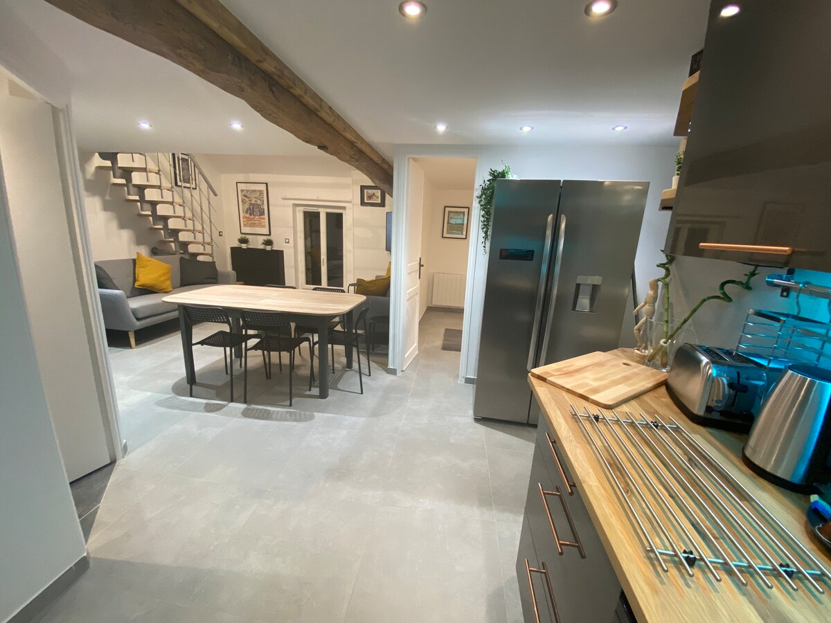 Et pent hus bygget i 2023 i hjertet av Linas, ved foten av Parc de la Tour de Montlhery. Det er på 95 kvm med utstyrt kjøkken og tre velutstyrte soverom, samt en liten hage på baksiden. Det er en åttetimers kjøretur fra Linas-Montlhéry-racerbane. Alt er nytt og av høy kvalitet med en fin dekorasjon. Det ligger i en privat underavdeling med seks hus i et rolig miljø. To parkeringsplasser foran huset. 🛑 les om stedet mitt 🚫 Fester er ikke tillatt.