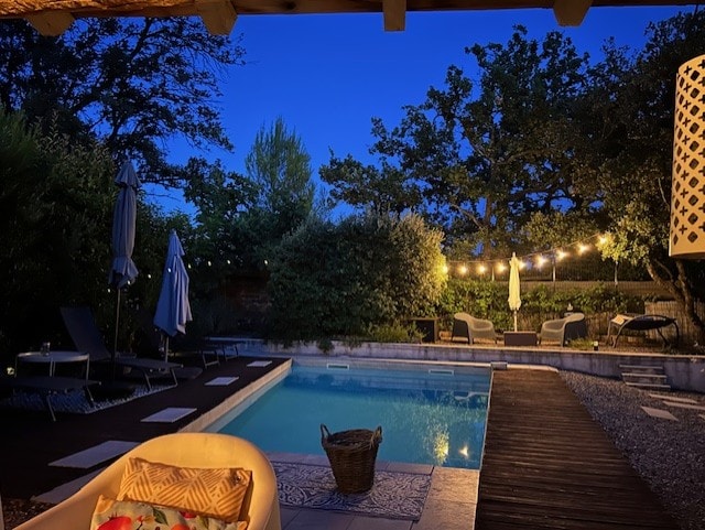 "La Maison aux Oliviers" er en liten sjarmerende gård på 90m2, med aircondition, uavhengig og ligger på en gammel olivenlund, i en rolig anlagt hage med et vakkert oppvarmet og sikkert privat basseng. Den store markisen gir mulighet til å oppholde seg ute, beskyttet mot sol og vind (mistral). I nærheten av det historiske sentrum, det lokale markedet og butikkene (til fots), er det perfekt utstyrt for fjernarbeid (høyhastighetsfiber)