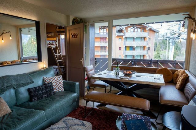 Fantastisk, velutstyrt leilighet som ligger i Morillon 1100 m, som har en liten alpint landsbyatmosfære. Nydelig utsikt over fjellet og utsikt over Piou Piou-området, slik at foreldre enkelt kan slippe av små barn og se på dem fra balkongen. Leiligheten ligger også i nærheten av ESF-kontoret og en seksmanns stolheis (Sairon) som tar deg opp til 1780 meter på ni minutter. Derfra er hele Grand Massif-skianlegget lett tilgjengelig, inkludert Flaine (et av de mest snøsikre feriestedene i departementet).