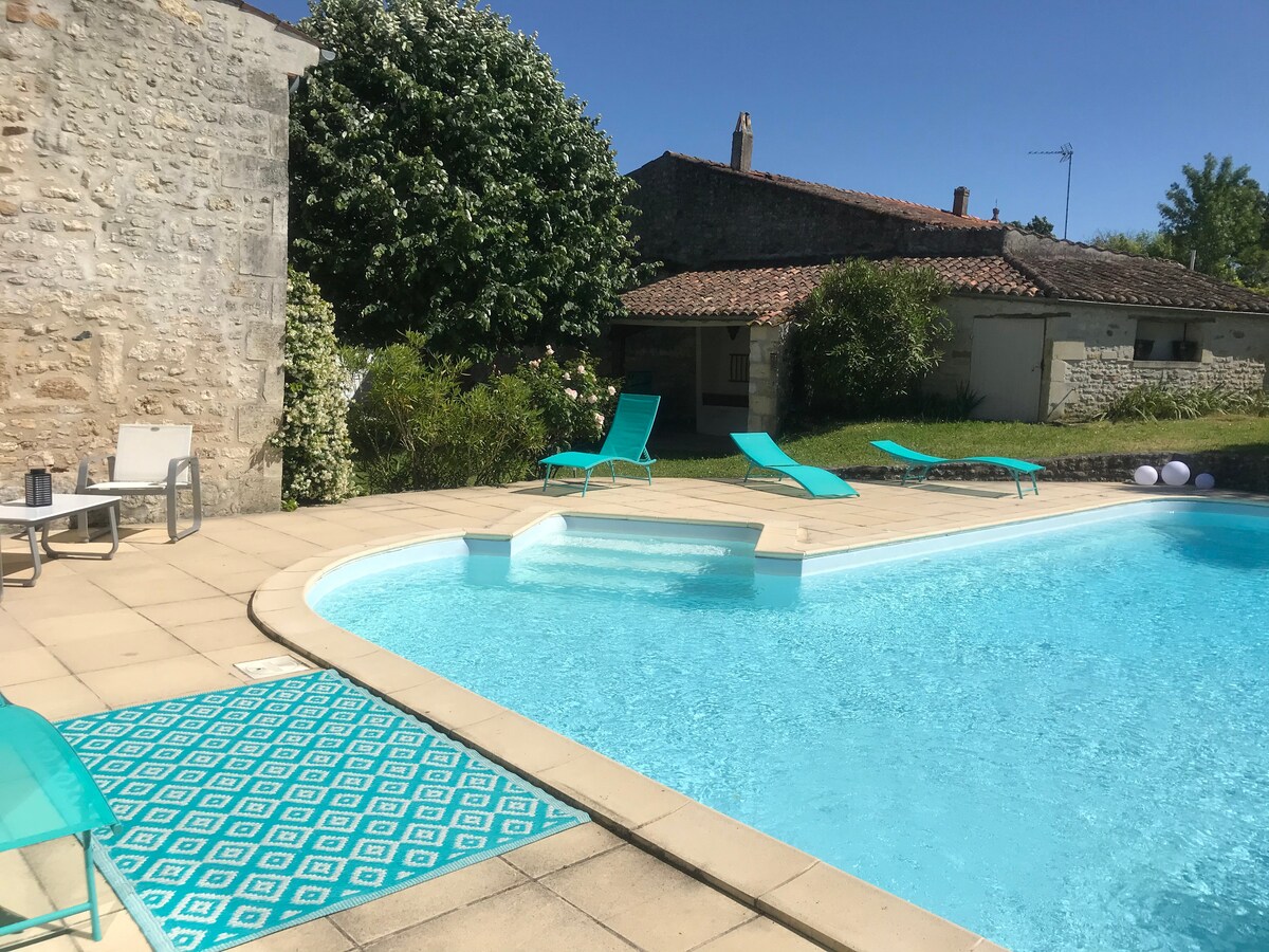 Velkommen til det sjarmerende huset vårt i Mornac-sur-Seudre,«den vakreste landsbyen i Frankrike i Royannais-området». Gammelt hus og fullstendig renovert. Ideelt for å tilbringe ferien din i Charente-Mar %{smart ti minutter med bil fra Côte de Beauté. Du kan bo på et av de tre soverommene, inkludert en åpen mezzanin og nyte den solfylte private gårdsplassen. Stedet har stue, utstyrt kjøkken, spisestue samt separat bad og toalett. Vi sees! Christine og Denis