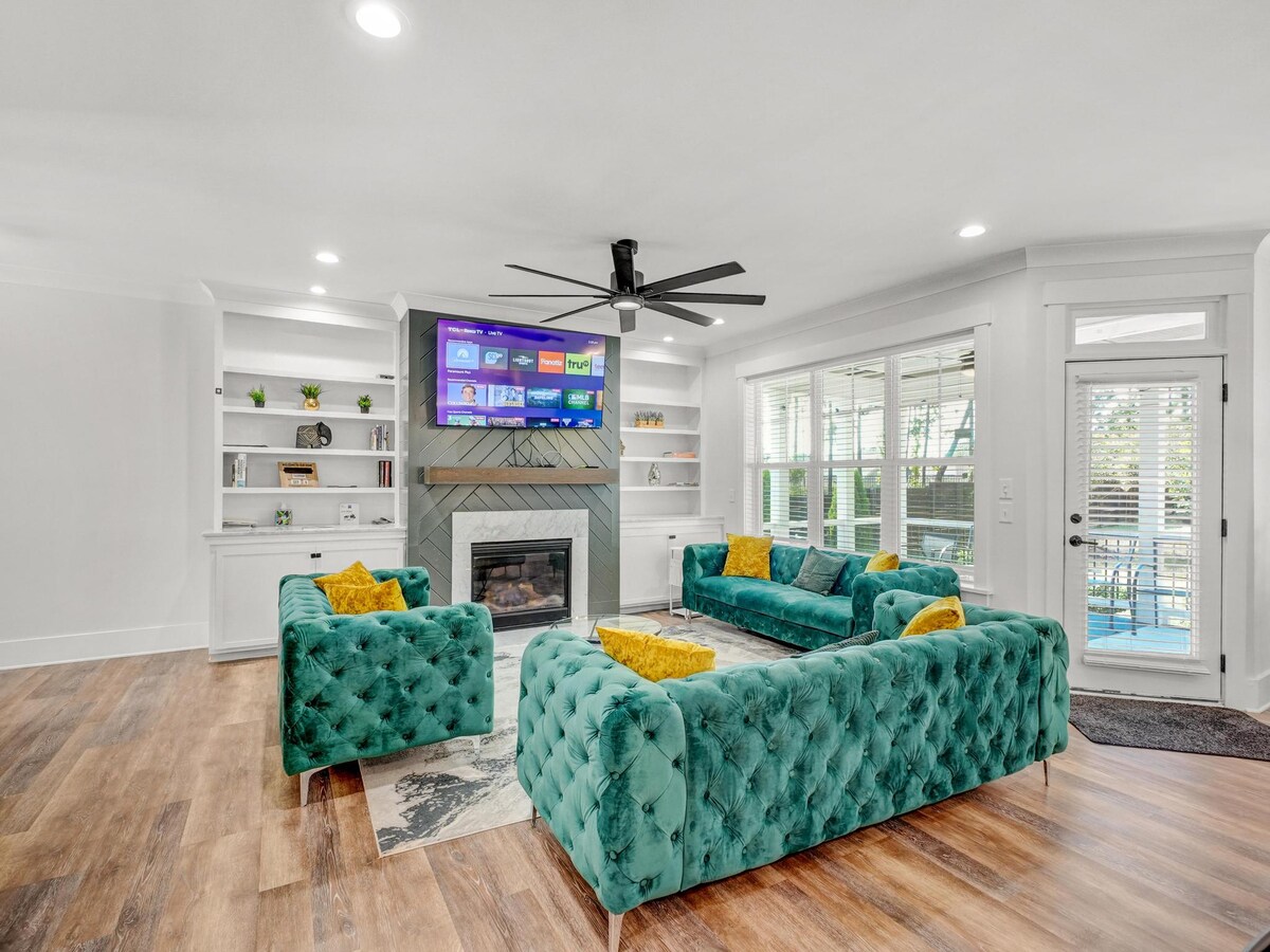 Gå inn i vårt moderne treetasjes feriested med fem soverom, åtte senger og 5,5 bad – ideelt for store grupper og familier. Nyt et spillrom med Meta Quest 2 og airhockey, elegant svart-hvit-gull innredning og romslige, komfortable soverom. Slapp av med stil, lad opp og skap uforglemmelige minner i dette elegante tilfluktsstedet i Cary. Bestill oppholdet ditt i dag!Nær Raleigh, RTP og RDU lufthavn. Gratis parkering, innsjekking uten vert og en privat bakgård med bålplass og husker – ideelt for avslappende kvelder med gruppen din."