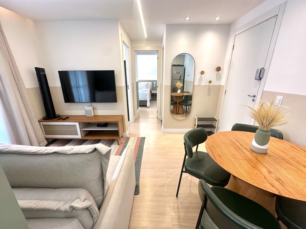 Apartamento com 2 quartos, moderno, aconchegante e com uma vista agradável, combinando conforto, praticidade e modernidade. Localização privilegiada perto dos melhores pontos turísticos do Rio de Janeiro: - Escadaria Selarón, Museu do Amanhã, Roda Gigante, AquaRio, aeroporto Santis Dumont e muito mais. Ar condicionado nos quartos, TV smart, internet rápida e mesa para 3 pessoas. Condomínio com piscina, sauna, playground, portaria 24h, co-work.