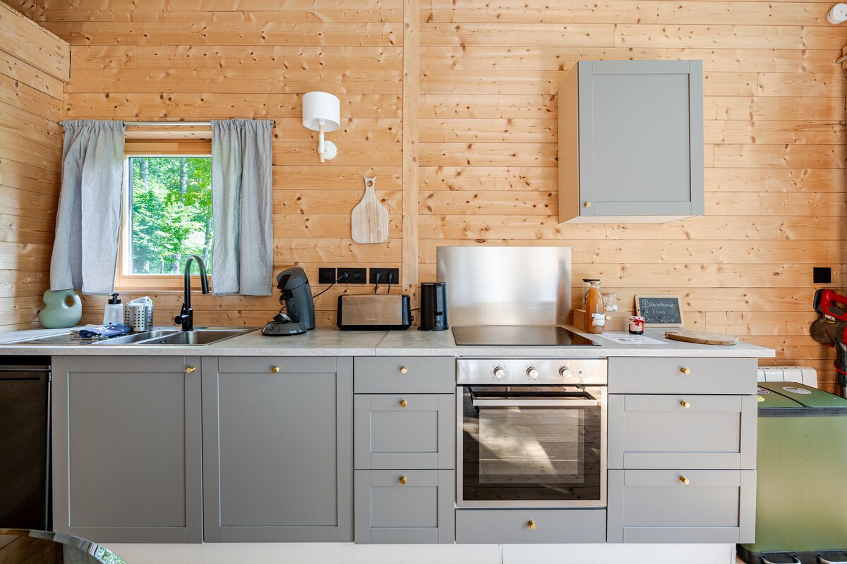 Hytte Sapin Zen med badstue, ved skogkanten