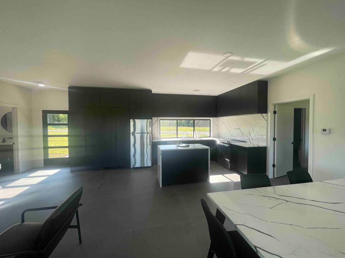 Newly Built, Modern Cabin w/stocked Private Pond and Yoga Deck. Just 3 miles outside the city limits. Live like Kings and Queens while immersed in nature and surrounded by luxury comforts at the Black Diamond Lodge. This space is designed to bring peace and calmness, relaxation, and truly a place to unplug & unwind. Every detail and item thoughtfully chosen to create the ultimate outdoor getaway for you and your family and friends to enjoy.