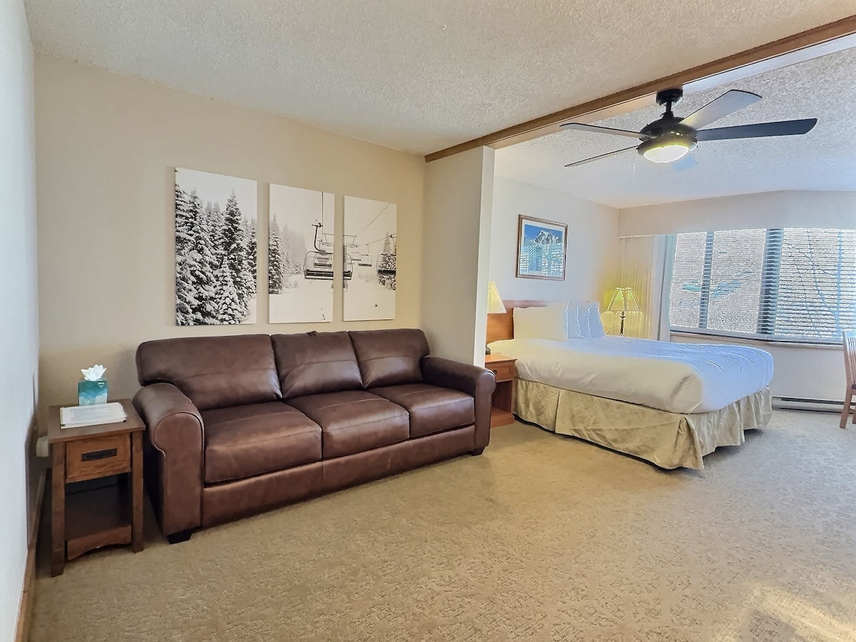 Grand Lodge er der rimelighet møter komfort. Dette budsjettvennlige hotellet uten dikkedarer er perfekt for deg som ønsker å nyte alt Crested Butte har å tilby for mindre. Beliggende bare noen skritt fra skiheiser, barer, restauranter og gratis skyttel til sentrum. Beliggenheten er uslåelig. Denne romslige studioleiligheten har en kingsize-seng, en kingsize-seng og et tekjøkken. Bygningens fasiliteter inkluderer boblebad, oppvarmet basseng, spa, treningsstudio, badstue og elbillading. Næringslisens-ID: 304504.