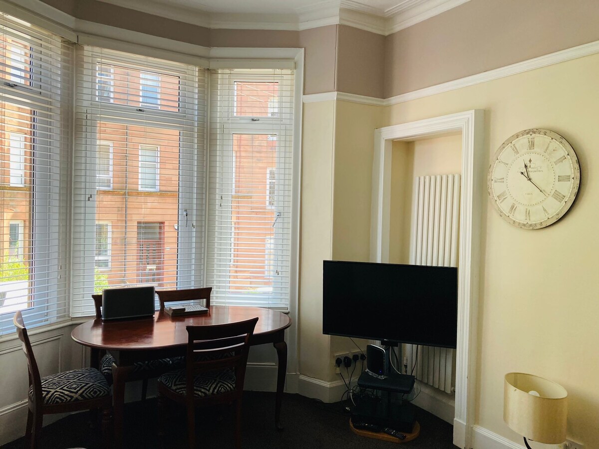 Vakker tradisjonell leilighet i Shawlands, den summende sørsiden av Glasgow. Queens Park, trendy barer, restauranter og supermarkeder ligger rett utenfor døren din. Glasgow sentrum er lett tilgjengelig innen ti minutter med tog eller litt lenger med buss. Leiligheten har svært romslige rom med originale funksjoner, nyutstyrt bad og har en veldig hjemlig følelse. I samsvar med Covid-19-forskriftene desinfiseres leiligheten fullstendig mellom bestillinger. Gratis gateparkering er tilgjengelig.