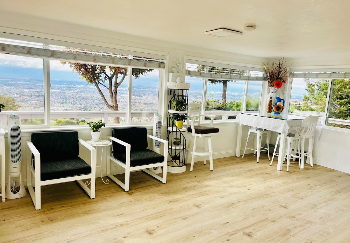 Et luksuriøst tilfluktssted over San Jose Hills med fantastisk utsikt over sentrum av San Jose hele veien til San Francisco Bay. Avsides og fredelige omgivelser, men bare 10 minutter til sentrum. Dette er en inngjerdet eiendom som er sikret. Eiendommen har 2 soverom og 1 bad med gourmetkjøkken. Inkludert innebygd vaskemaskin og tørketrommel. Gjestehuset vårt er helt privat og deler ikke noe område inne i huset. Gi oss beskjed hvis du har spørsmål om eiendommen vår.