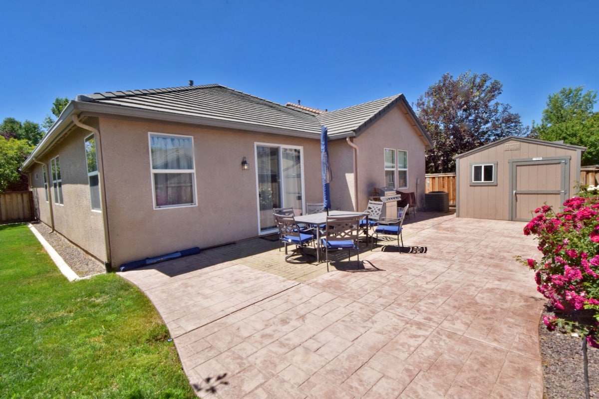 Tre helt nye California king-senger! Nyt dette sentralt beliggende avslappende hjemmet. Bakgården er flott for små sammenkomster med komfortable utemøbler og et helt nytt boblebad for 4–6 personer. Hovedklimaanlegg med bærbare klimaanlegg i alle rom for å bidra til å holde seg kjølig om sommeren. Rask tilgang til I-80 for dagsturer til Lake Tahoe, Pyramid Lake eller Virginia City. Nyt Renos sommerarrangementer – Reno Rodeo, Hot August Nights, Rib Cookoff, Street Vibrations, Balloon and Air Races.