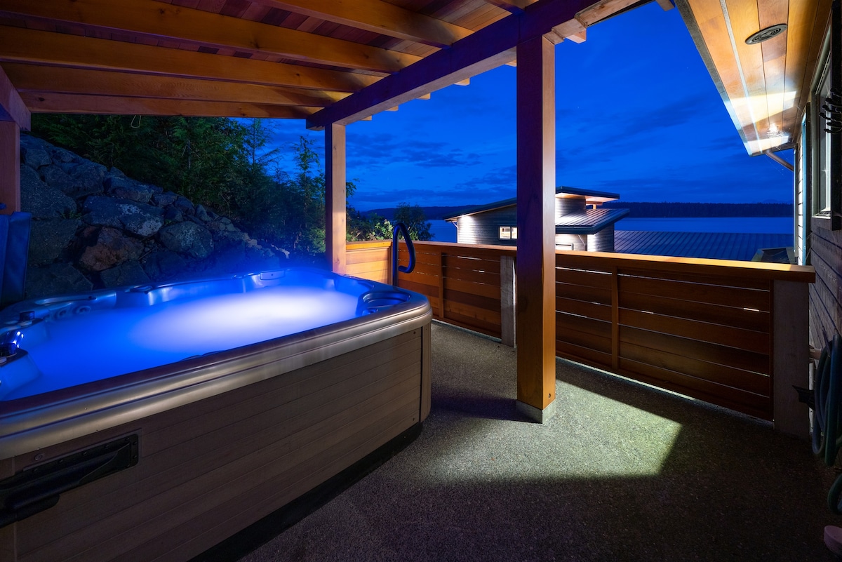 Kom og bo i dette luksuriøse nye hjemmet med to soverom og to bad. Denne eiendommen har panoramautsikt over havet, boblebad, stor terrasse, nivå 2 elbillader og alle fasilitetene du trenger for å kose deg under oppholdet ditt. Slapp av i den romslige stuen eller nyt middagen i gourmetkjøkkenet i dette fantastiske private hjemmet. Klimaanlegg, oppvarmet baderomsgulv, stor dusj med to dusjhoder, badekar og spisebar med havutsikt gjør at du kan slappe av mens du ser etter hvaler som svømmer forbi i Salishhavet.