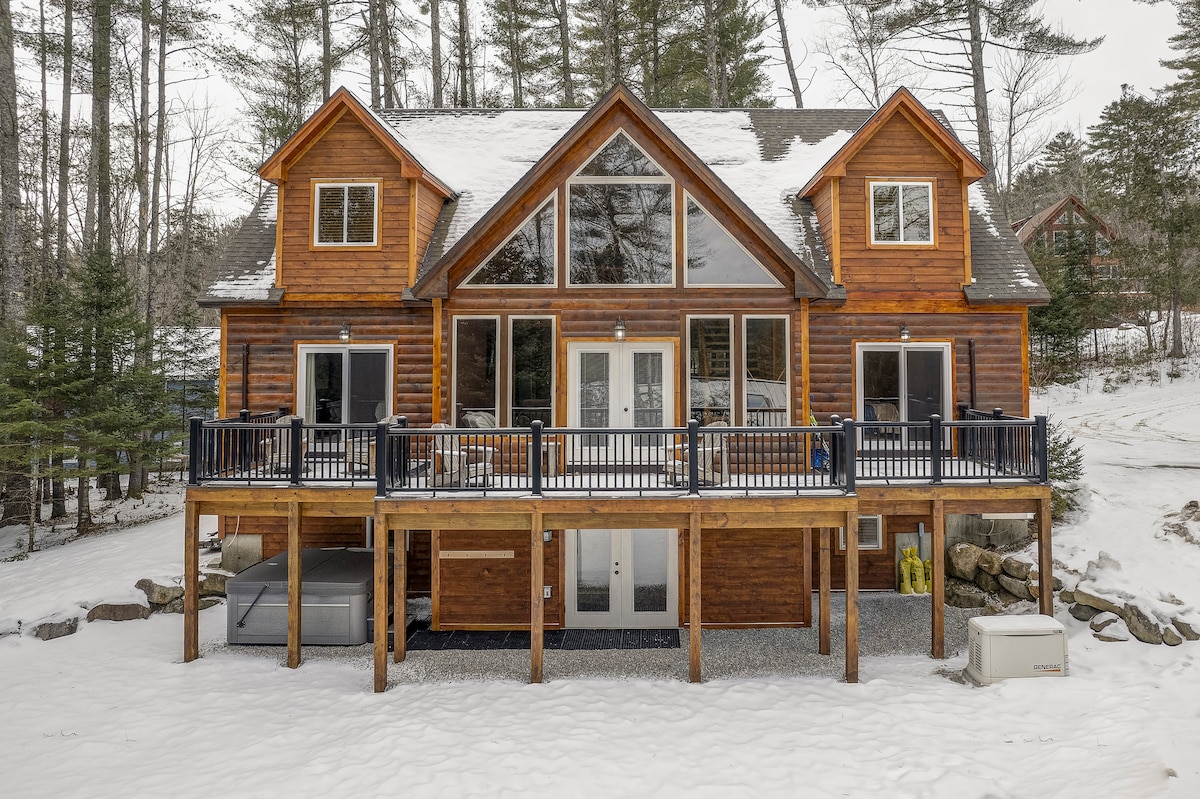 Vårskigåing! Sugar and Snow 20%drabatt! Mars er lønnesukker og STOR snøsesong i Bretton Woods (bare 20 minutter unna). Luksuriøs hytte ved privat dam med boblebad, peis utendørs, gasspeis og gratis vin, fullt kjøkken, fint porselen, ny dusj, jacuzzi-badekar, elektriske peiser og to arbeidsområder. 68 hektar + stier til en nærliggende statsskog. Dette er den perfekte basen for skisport i høysesongen og fredelige vintereventyr. Hunder er velkomne!